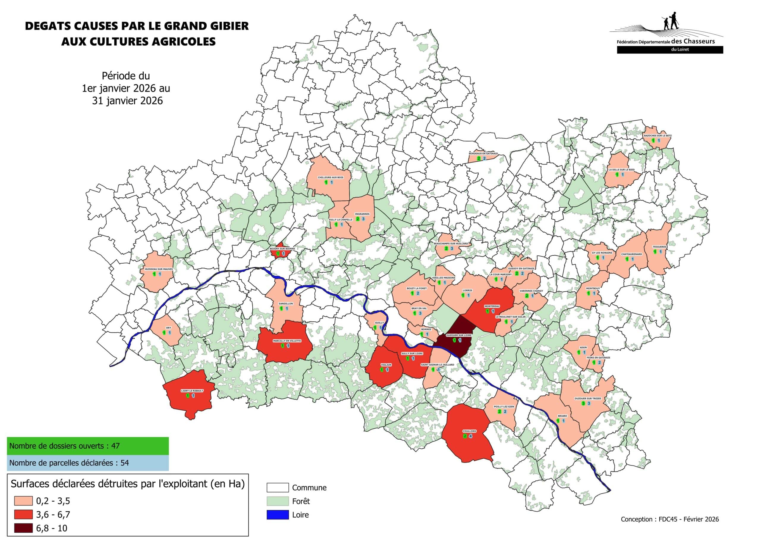 Cartographie « Alerte Dégâts de Grand Gibier aux cultures à rendement agricole » : Janvier 2026